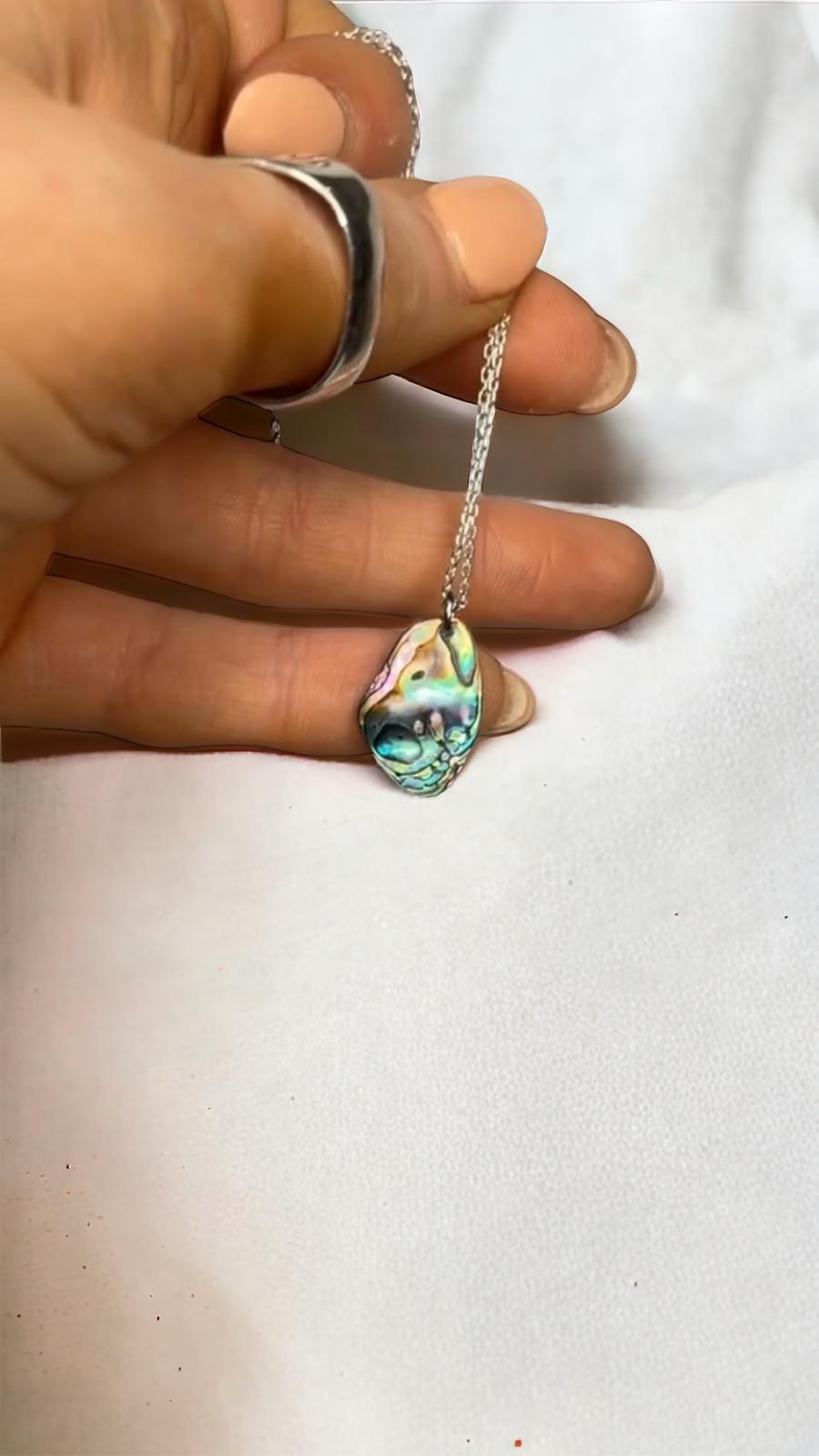 Indulge in luxury with our Natural Abalone Shell Sterling Silver Necklace. Crafted with genuine abalone shell and sterling silver, this necklace exudes elegance and sophistication. Elevate any outfit with its natural beauty and exquisite design. A must-have for any fashion-forward individual.